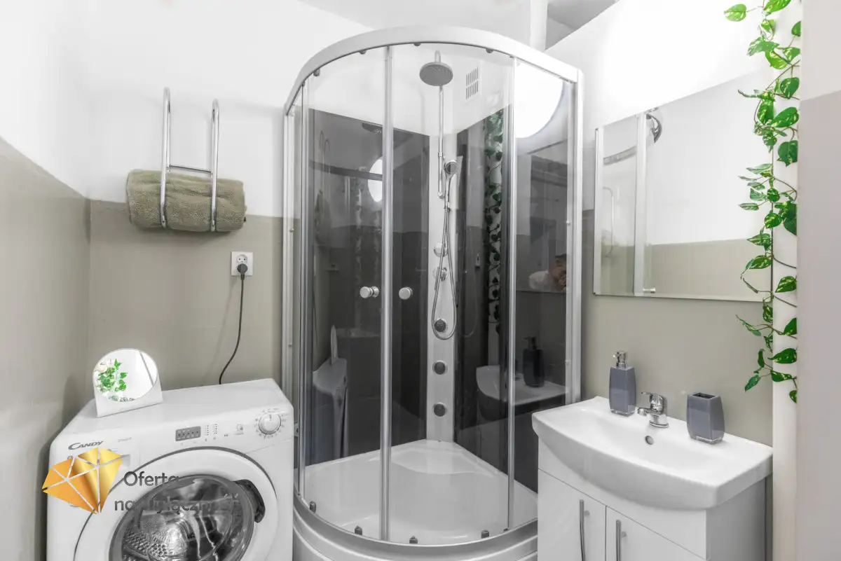 • Wyposażenie: mieszkanie w pełni umeblowane, kuchnia z płytą gazową, piekarnikiem, lodówką, czajnikiem; w łazience - pralka