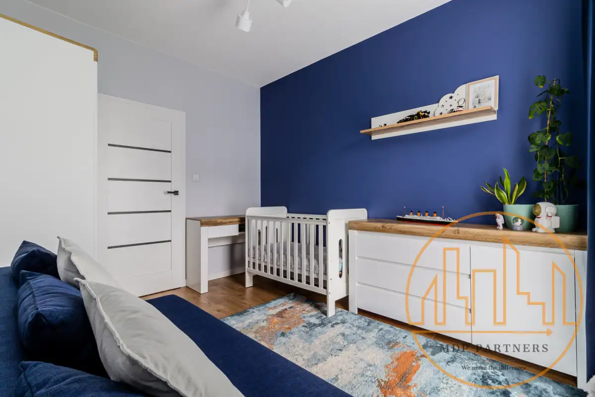 • Pokój dziecięcy (10 m²)Wyposażony w szafę, biurko i rozkładane łóżko.