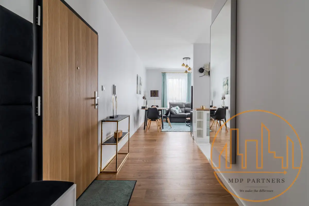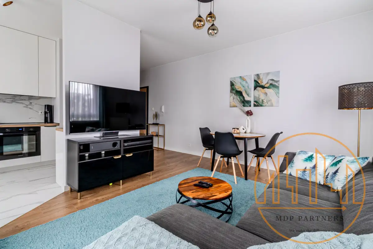 Lokal znajduje się na 2. piętrze 5-piętrowego budynku oddanego do użytku w 2021 roku. Mieszkanie zostało urządzone z dbałością o detale przez renomowaną pracownię DEER DESIGN.