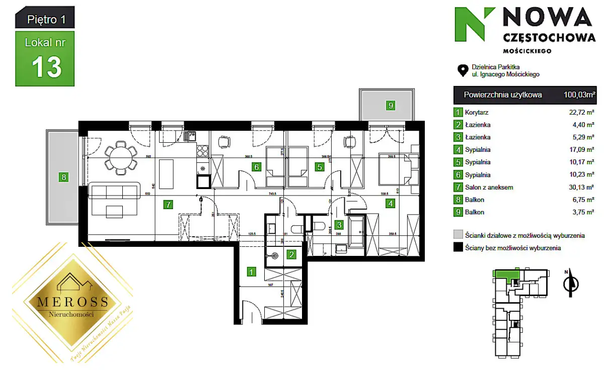 MEROSS Nieruchomości & ParkLand Inwestycjeprzedstawia do sprzedaży mieszkaniezlokalizowane w dzielnicy Parkitka w Częstochowiena osiedlu Park MałopolskaMieszkanie może być wyposażonew Inteligentny...
