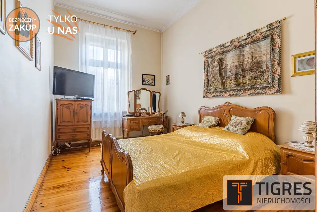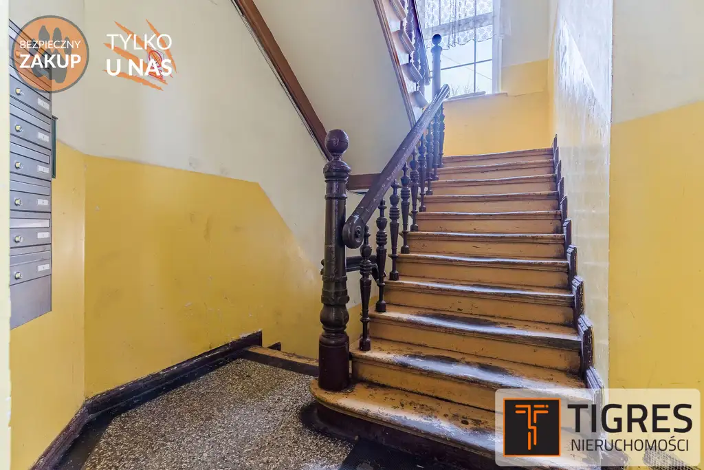 mieszkania przynależy duża piwnica o powierzchni ok. 25 m². Kamienica objęta jest opieką konserwatorską, a okolica systematycznie się rozwija – idealna inwestycja dla osób ceniących architekturę, przestrzeń i potencjał lokalizacyjny.
