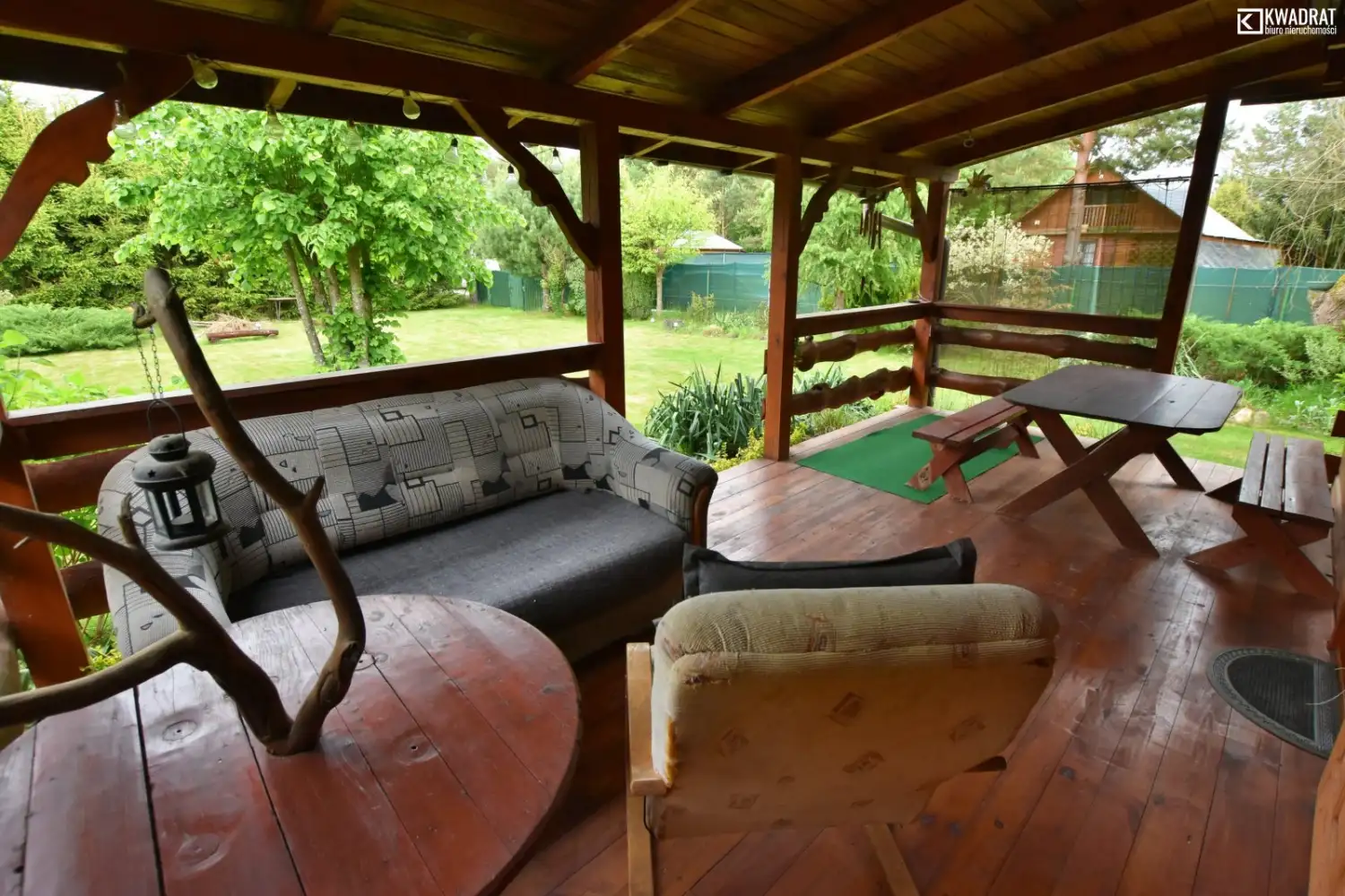 Domek mieści się na ogrodzonej działce o pow. 601m², położonej w spokojnej okolicy w odległości 700 m od piaszczystej plaży.