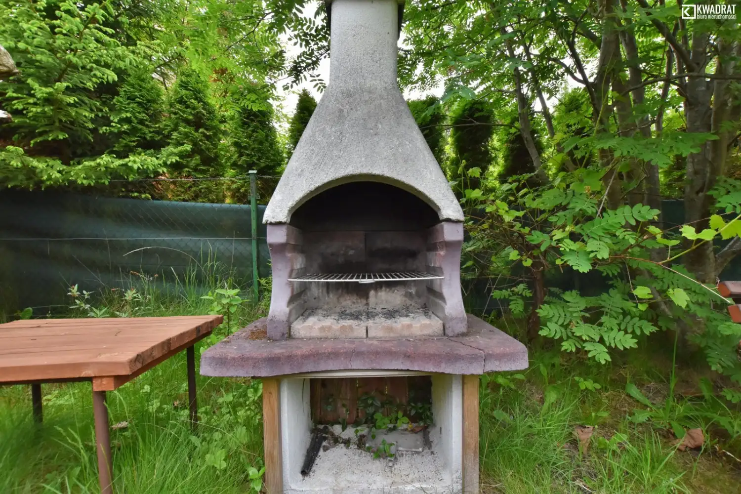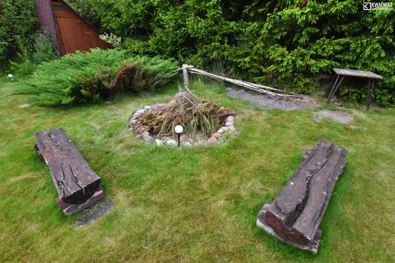 W zielonym ogrodzie znajdą Państwo palenisko z ławkami, przestrzeń do zabaw i rekreacji, a także miejsce do zaparkowania 4. samochodów.