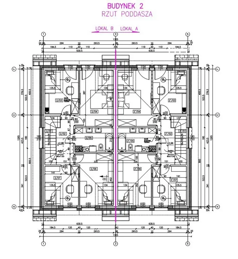 - Podwójna wewnętrzna ściana dzielące lokale A i B o gr. 18cm