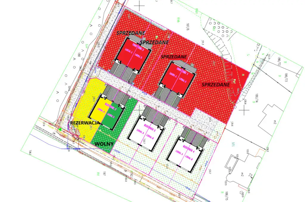 Przedmiotowe nieruchomości różnią się wielkością działek od ok. 308m² do ok. 885m². Budynek stanowi spójną bryłę.