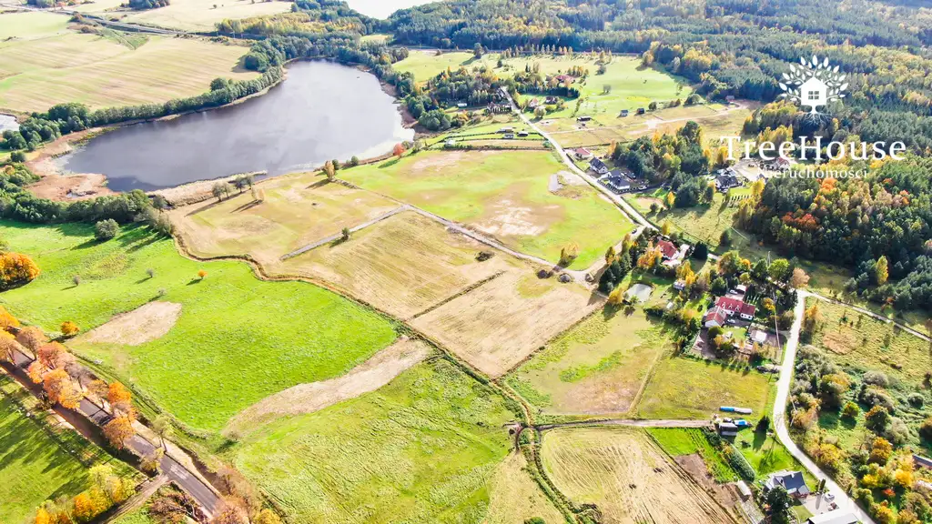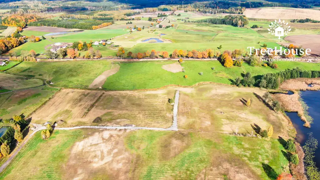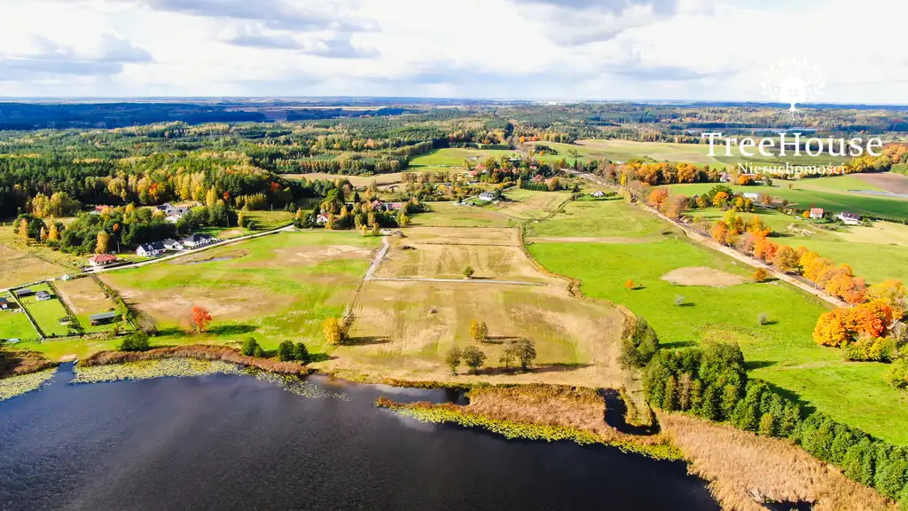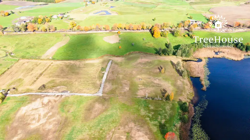 Strefa zabudowy oddalona jest 100 m od tafli jeziora, co daje możliwość realizacji inwestycji z zachowaniem kontaktu z naturą i widokiem na wodę.