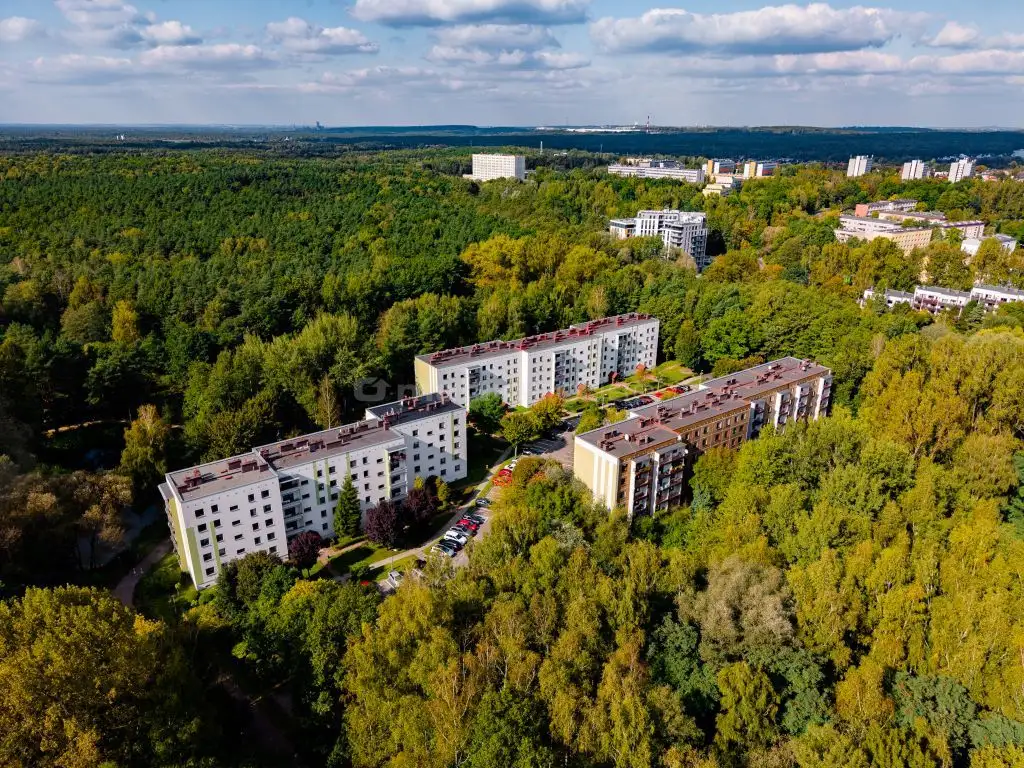 Wnętrze jest jasne i przestronne. Znajduje się tu przytulny salon połączony z kuchnią, duży pokój idealny na sypialnię lub gabinet, łazienka oraz funkcjonalny przedpokój z pojemną szafą. Salon z wyjściem na duży balkon, z którego rozciąga się piękny widok na zieleń.