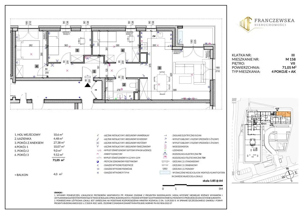 Czteropokojowe mieszkanie o powierzchni 71,05 m² na 7 piętrze w 7-piętrowym budynku na nowoczesnym osiedlu na Czechowie w Lublinie.