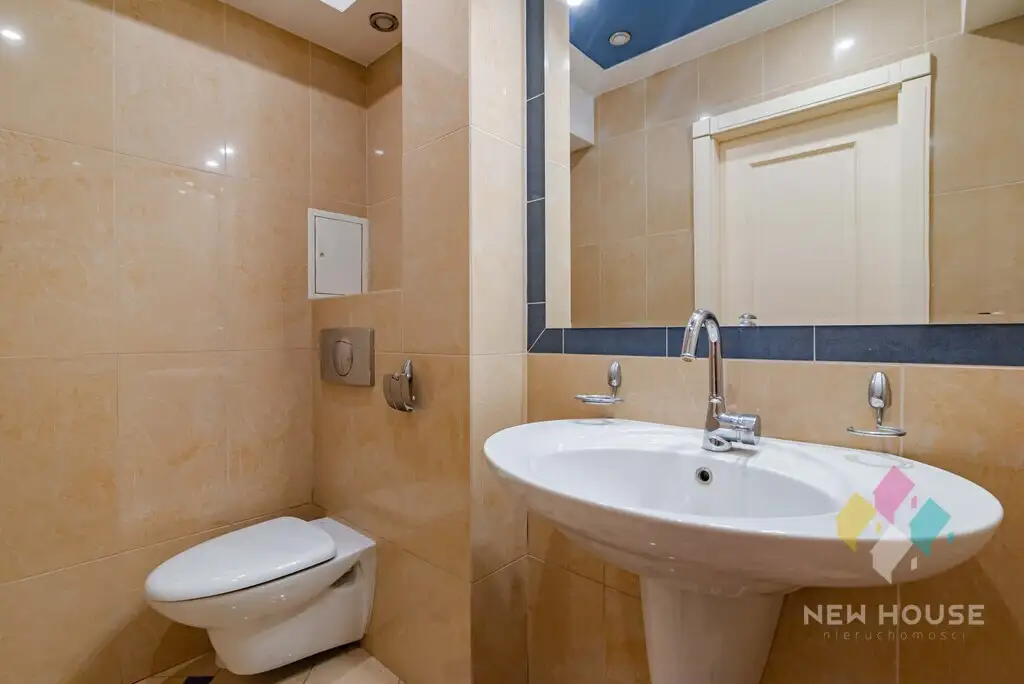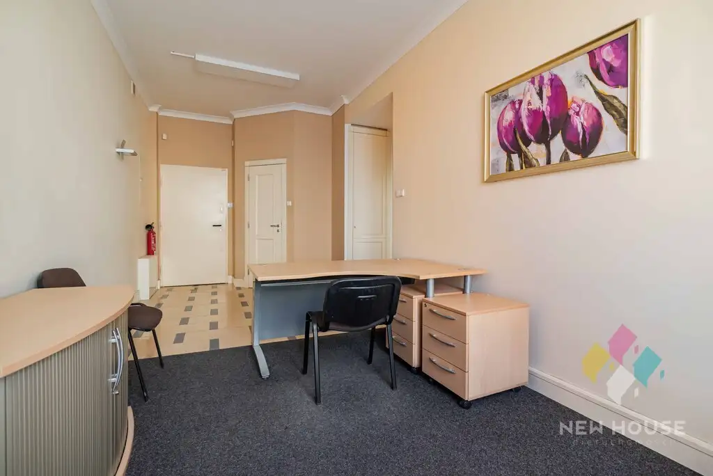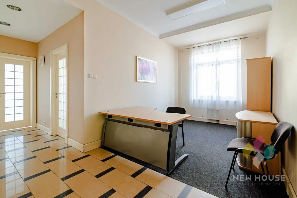Lokal o powierzchni 81,3 m² został zaprojektowany z myślą o funkcjonalności i wygodzie użytkowania, co czyni go idealnym miejscem dla biura rachunkowego, kancelarii lub innej działalności biznesowej. Już na wejściu do lokalu uwagę przykuwa przestronna recepcja, idealnie usytuowana naprzeciwko drzwi, co zapewnia profesjonalne pierwsze wrażenie dla klientów. Lokal składa się z kilku pomieszczeń: biura z bezpośrednim wyjściem na balkon (które może służyć jako prywatna przestrzeń do pracy lub gabinet), oraz dużego, przestronnego pokoju z wykuszem, idealnego na salę konferencyjną lub przestrzeń wspólną. W lokalu znajduje się również łazienka z WC oraz niewielkie, wygodne pomieszczenie socjalne. Wystrój wnętrz jest elegancki i zróżnicowany – na podłogach znajduje się parkiet, wykładzina oraz kafelki, co podkreśla różnorodność funkcjonalnych stref. Ogrzewanie gazowe z kotłowni w budynku, ogrzewanie rozliczane w czynszu.