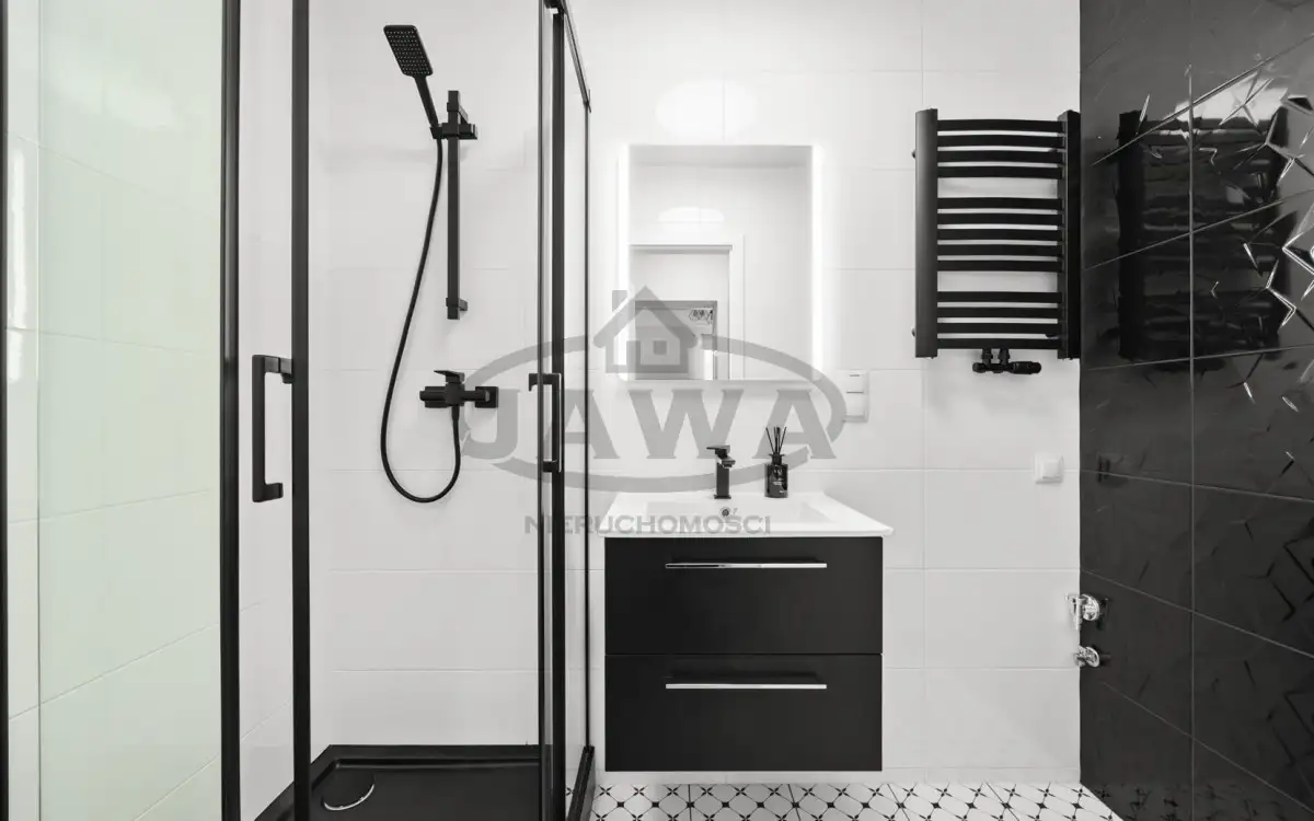 Wszystkie instalacje są nowe, co gwarantuje bezpieczeństwo i komfort użytkowania. Łazienka została wykończona z dbałością o detale, oferując nowoczesny prysznic i eleganckie płytki. W salonie oraz sypialni na podłodze zostały położone panele.