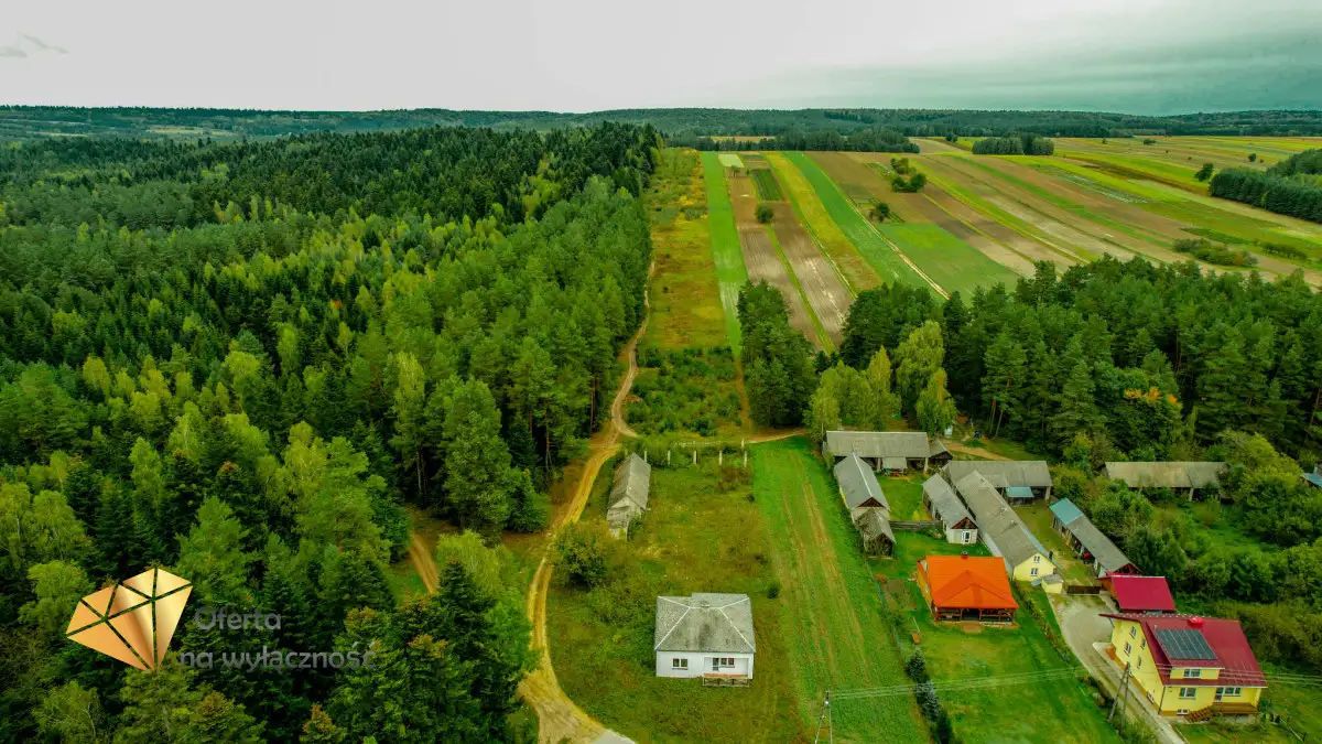 Dom z dużą działką o powierzchni 5,4 ha w pobliżu Krasnobrodu.