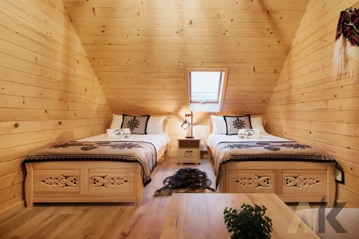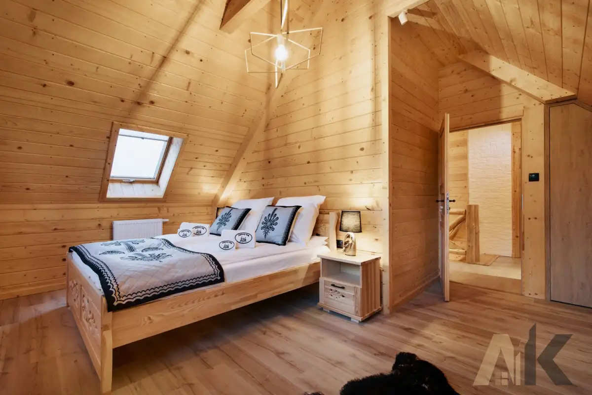 - Piętro z dwiema sypialniami, łazienką i... sauną!
