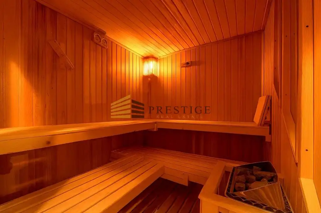 Piwnica: prywatna strefa relaksu z sauną i siłownią, pomieszczenia gospodarcze i techniczne oraz garaż na dwa samochody, łączące funkcjonalność z komfortem.