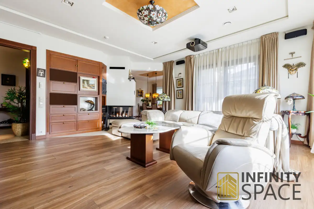 - przestronne pomieszczenia oraz wysokie sufity (296 cm na parterze i 300 cm na piętrze)