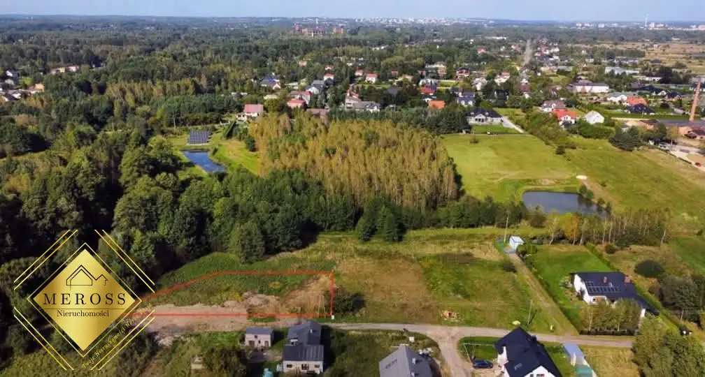 Wokół zabudowa domów jednorodzinnych, łąki, pola i lasy.