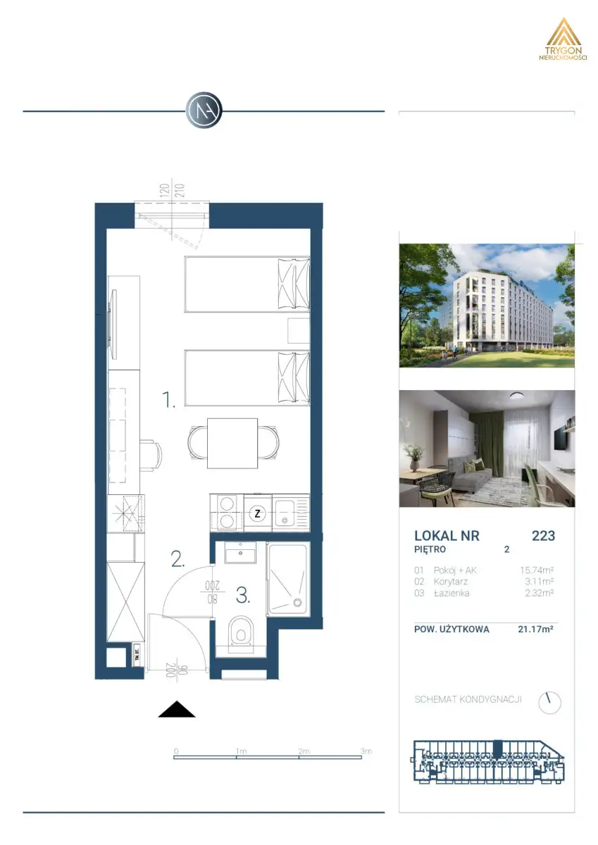 Oferta mieszkania o wielkości blisko 21 m² w pełni umeblowane: