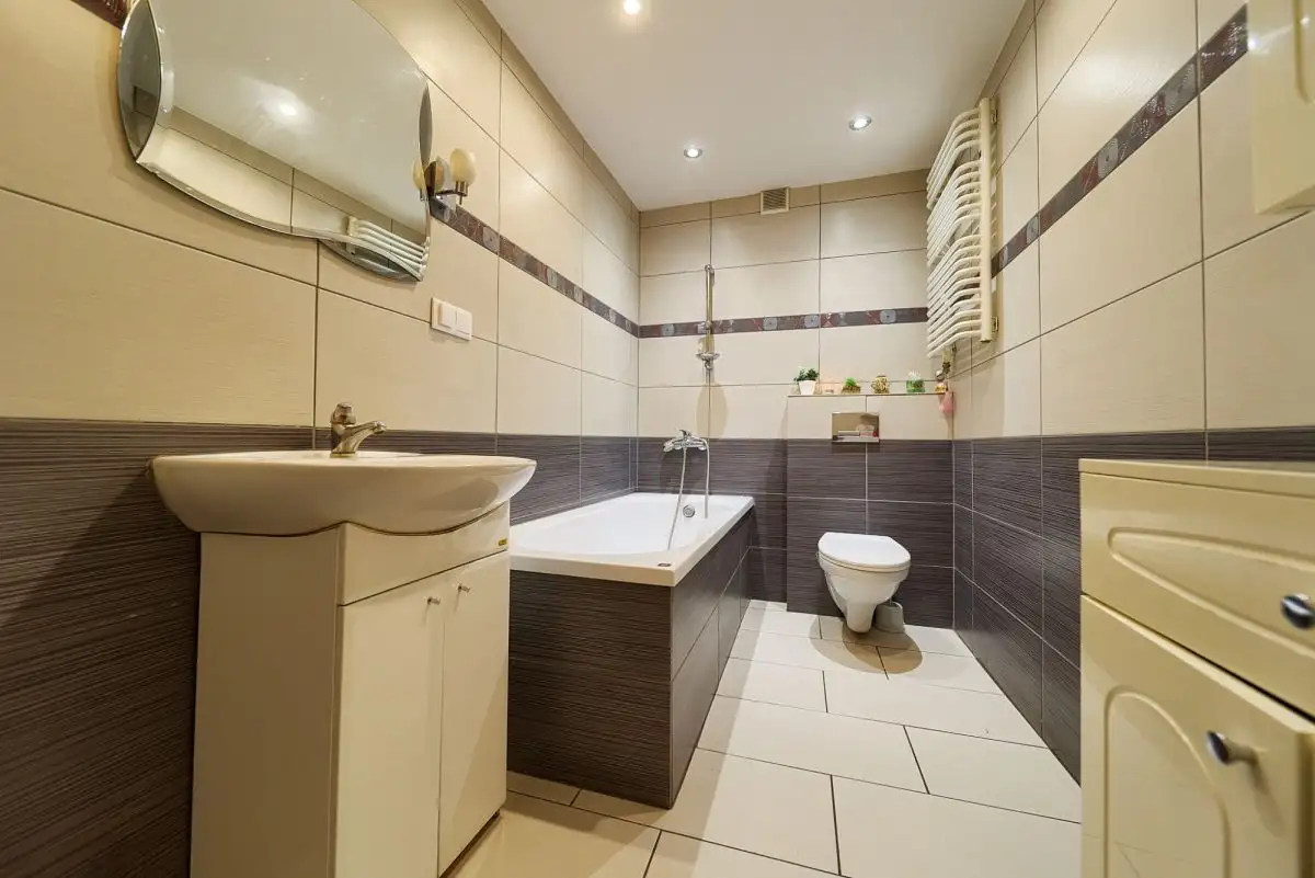 Dom po kapitalnym remoncie sprzed 10 lat nie wymaga żadnych nakładów - jest gotowy do zamieszkania. Okna PCV zapewniają doskonałą izolację, a pełne wyposażenie pozostaje w cenie nieruchomości. Ogrzewanie centralne gazowe z piecem dwufunkcyjnym (13-letnim) oraz alternatywnie piec na ekogroszek z podajnikiem. Grzejniki miedziane wymienione około 8 lat temu, instalacja elektryczna również miedziana. Dach pokryty trwałą blachodachówką. Na podłogach panele, w kuchni i przedpokoju praktyczna terakota.