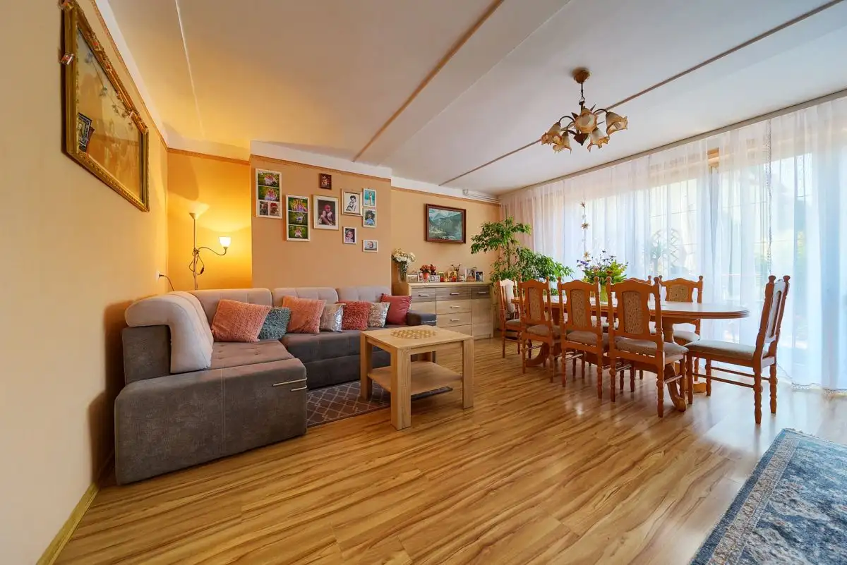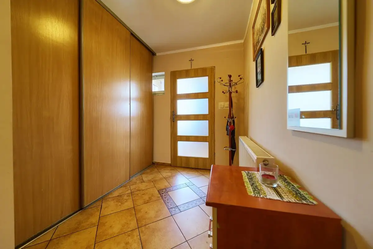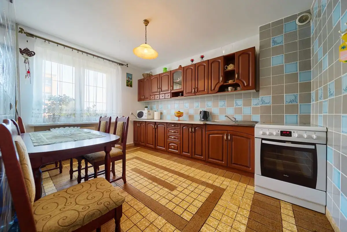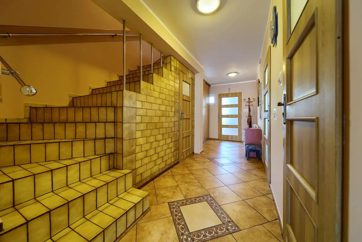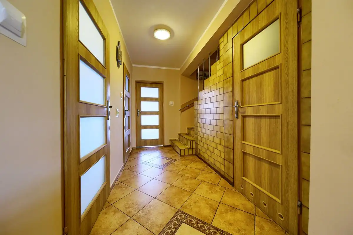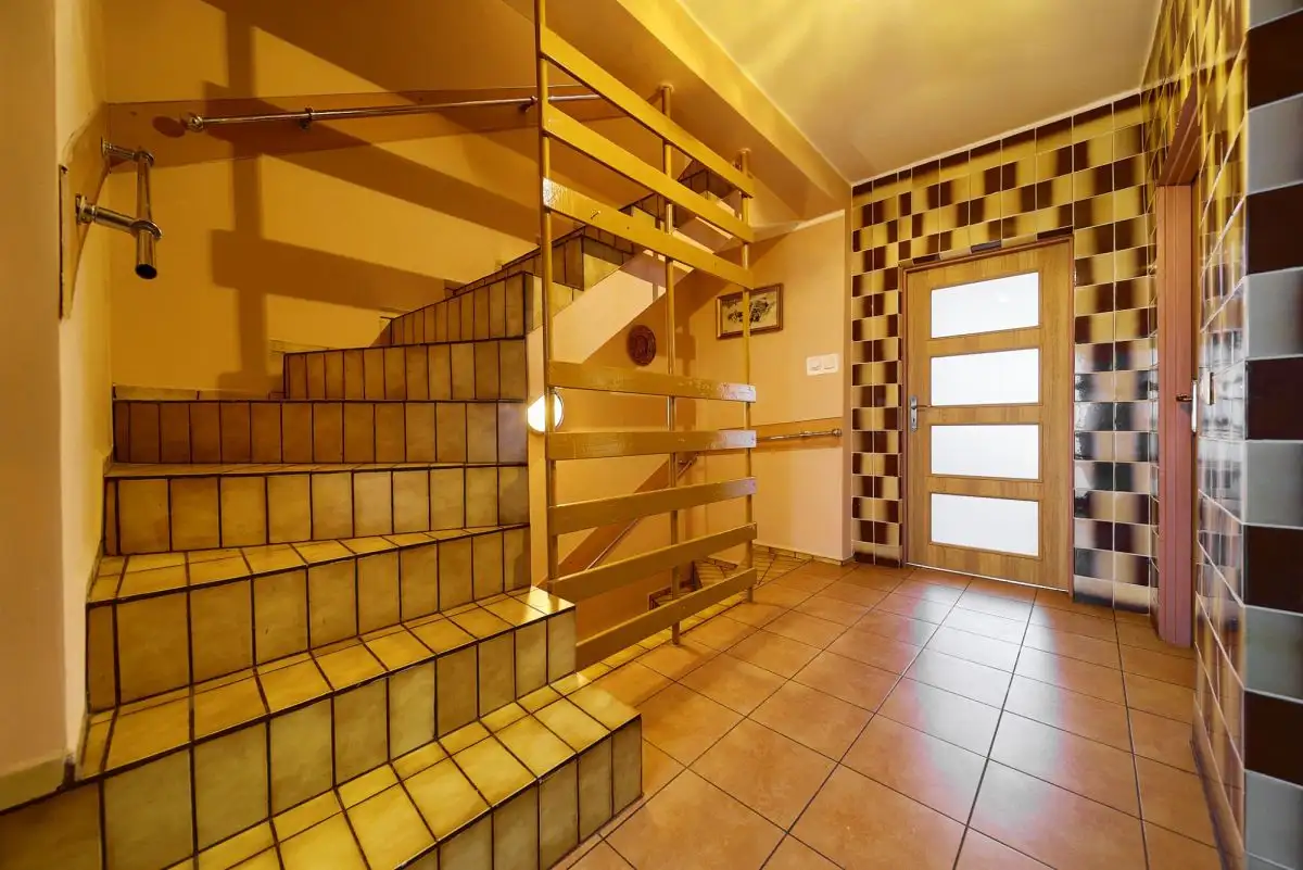 Dom o łącznej powierzchni 216 m² rozplanowany jest na czterech poziomach, oferując niezwykłą funkcjonalność. Suterena z wysokimi stropami obejmuje 3 pomieszczenia z możliwością adaptacji na drugą kuchnię lub niezależne mieszkanie. Parter to przestronny salon 30 m² z wyjściem na taras, zamknięta kuchnia z oknem (z możliwością połączenia z salonem), łazienka z wanną oraz praktyczny wiatrołap. Pierwsze piętro mieści aż 4 pokoje kuchni , łazienkę z prysznicem. Poddasze oferuje dodatkowy pokój, łazienkę z WC, korytarz i skrytkę. Strych z podłogą stanowi dodatkową przestrzeń magazynową. Do domu przynależy garaż jednostanowiskowy z kanałem.