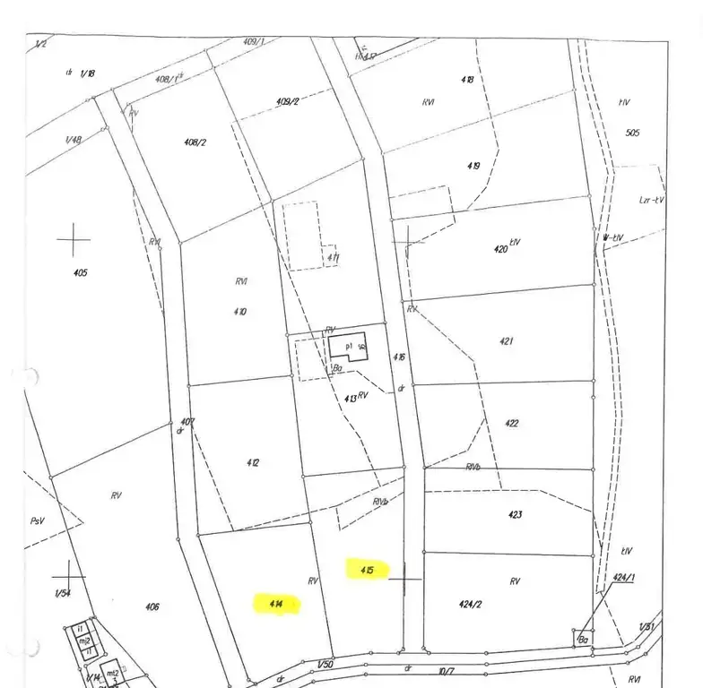 2) 415 o powierzchni 0,5598 ha (użytek, klasa: RIVb-0,0503 ha, RV-0,4355 ha,