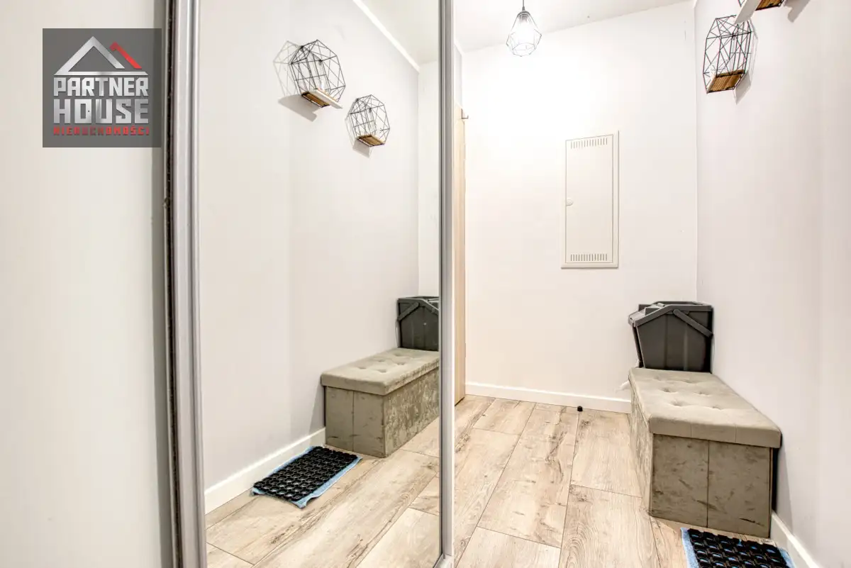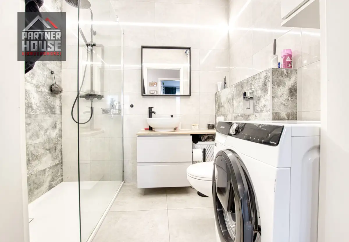 Funkcjonalny układ - przestronny salon z aneksem kuchennym, ustawna sypialnia oraz nowoczesna łazienka z prysznicem typu walk-in.