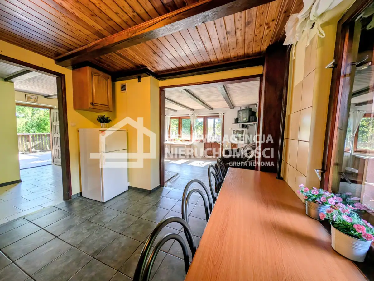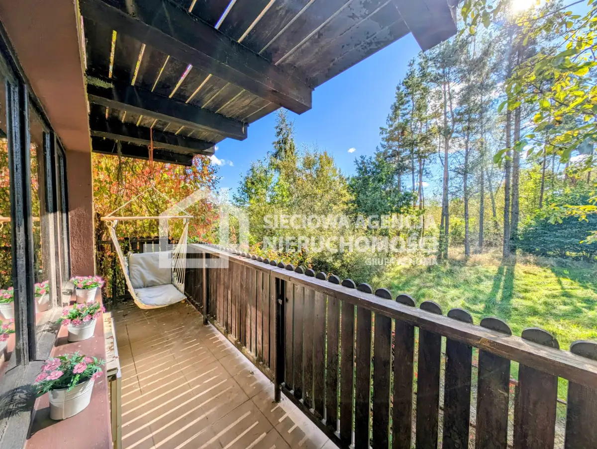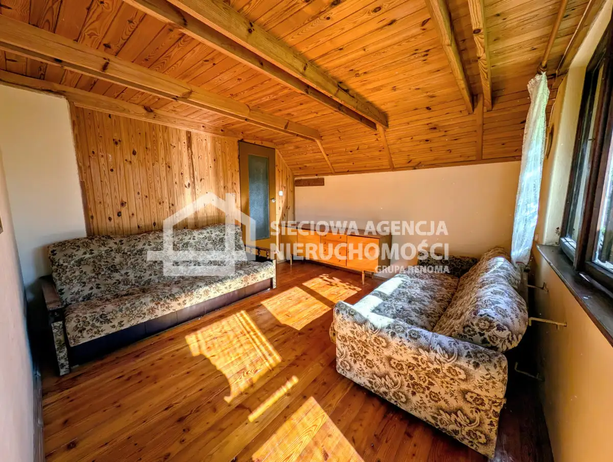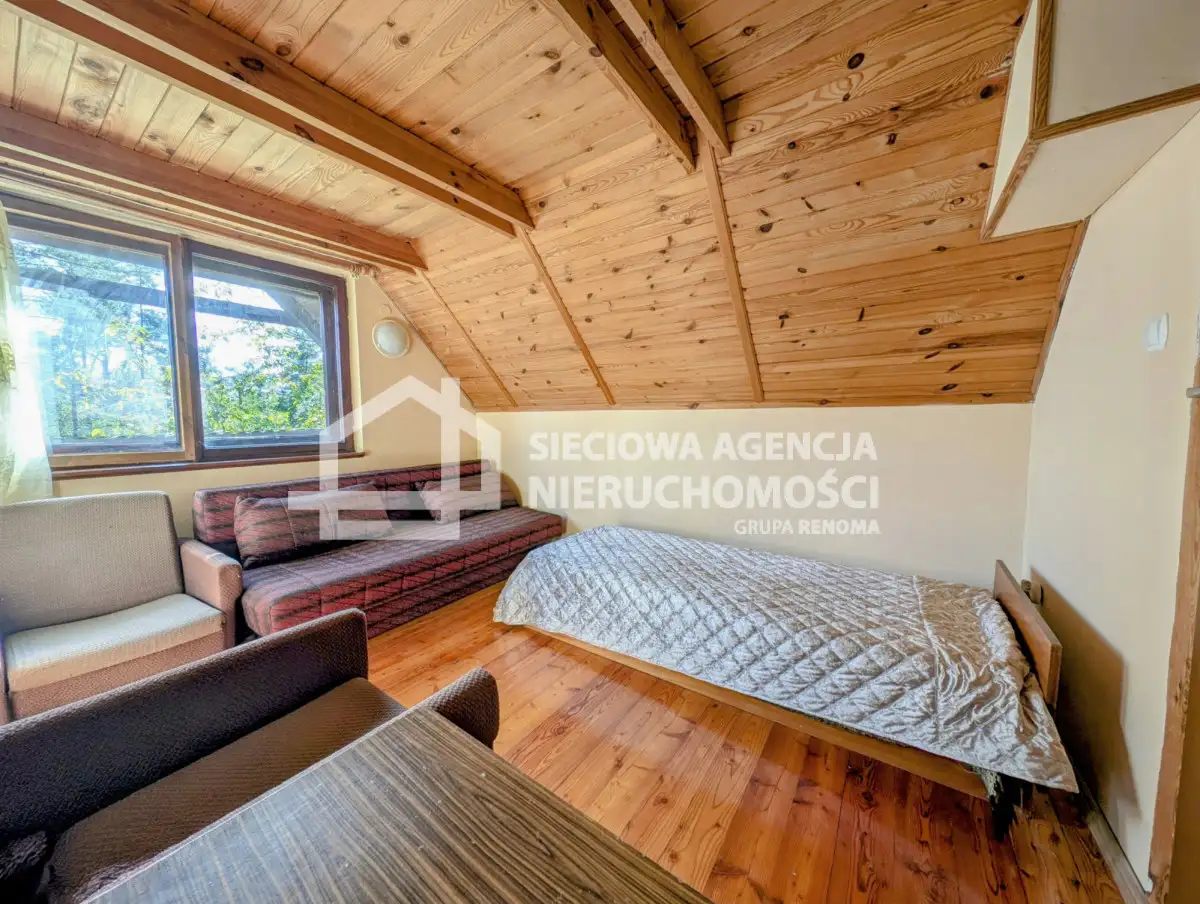saunę fińską, w której odprężysz się po dniu pełnym wrażeń.Na działce stoi też mały drewniany domek dla dzieci, a tuż obok posesji rozciąga się łąka - miejsce na rodzinne gry, ognisko albo dodatkowy parking.
