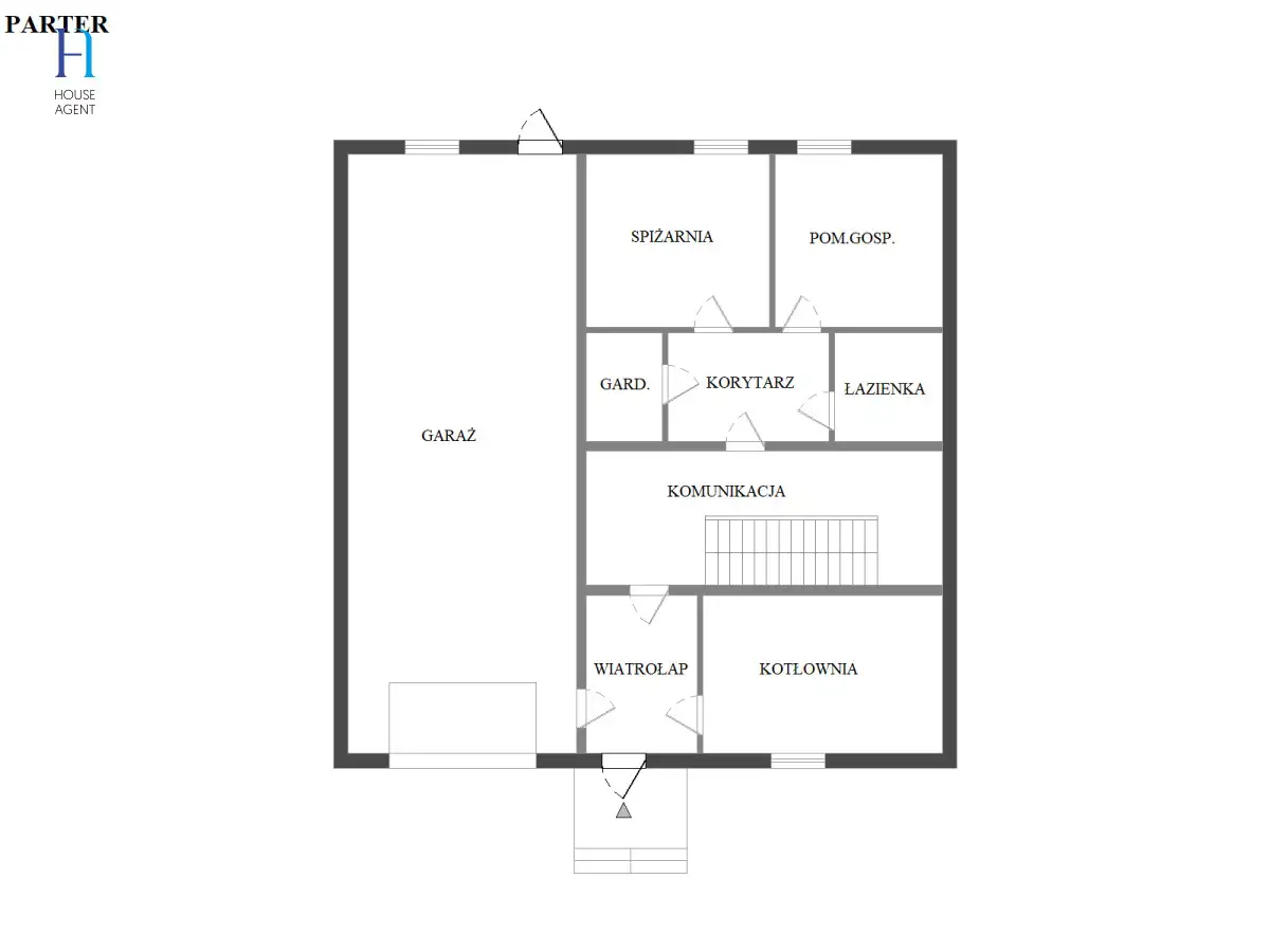 Na parterze znajdziesz praktyczny wiatrołap, przestronny przedpokój, pralnię, garderobę, łazienkę, spiżarnię oraz pomieszczenie gospodarcze.