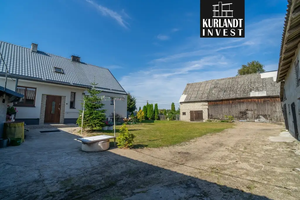 Na terenie nieruchomości znajduje się dom o powierzchni 199 m² oraz budynki gospodarcze i garaż.