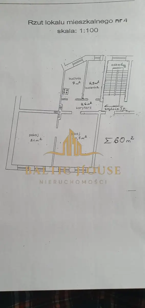 Lokal o powierzchni 60 m² z ekspozycją okien północ - południe: