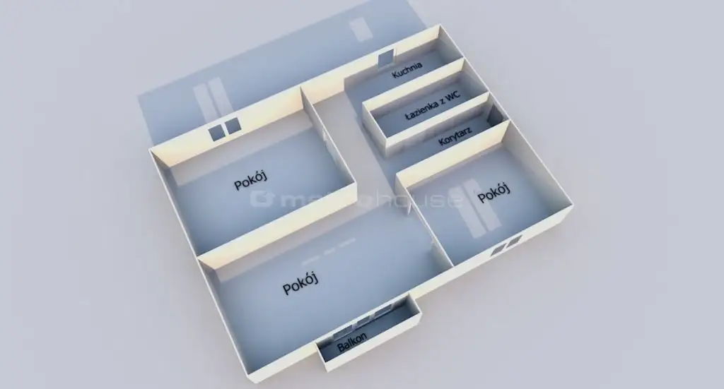 Przestronność: 57,75 m² z 3 pokojami, balkonem i przynależną piwnicą.