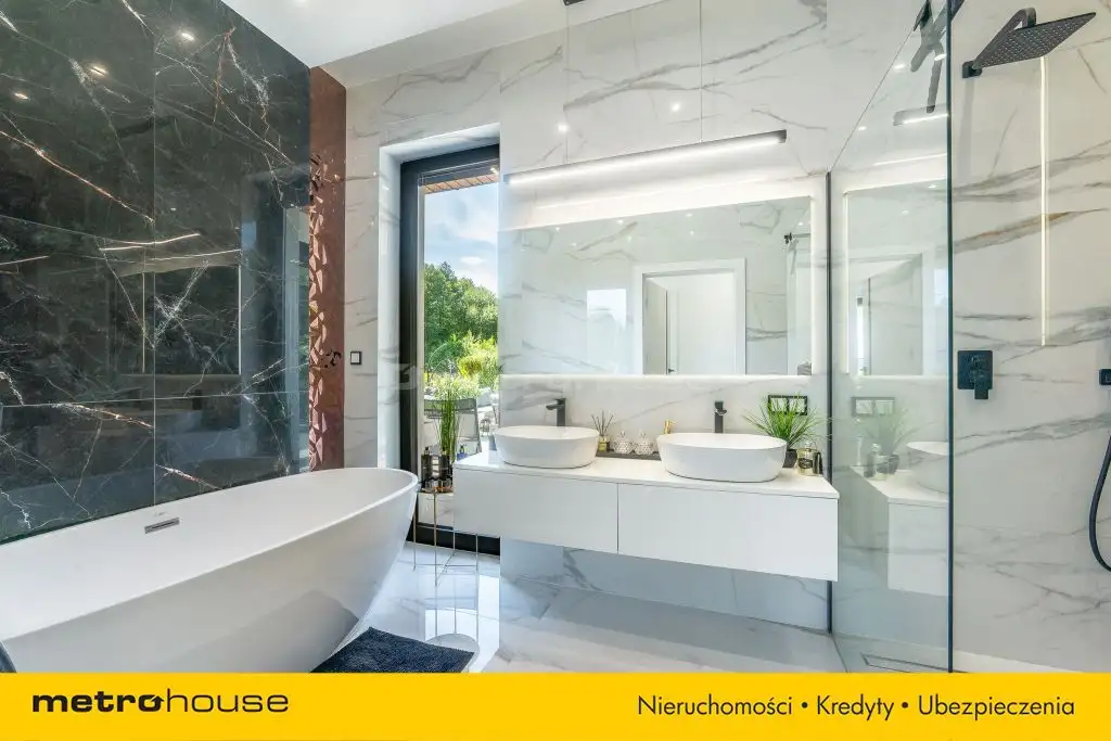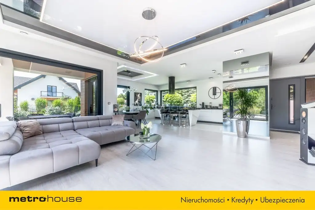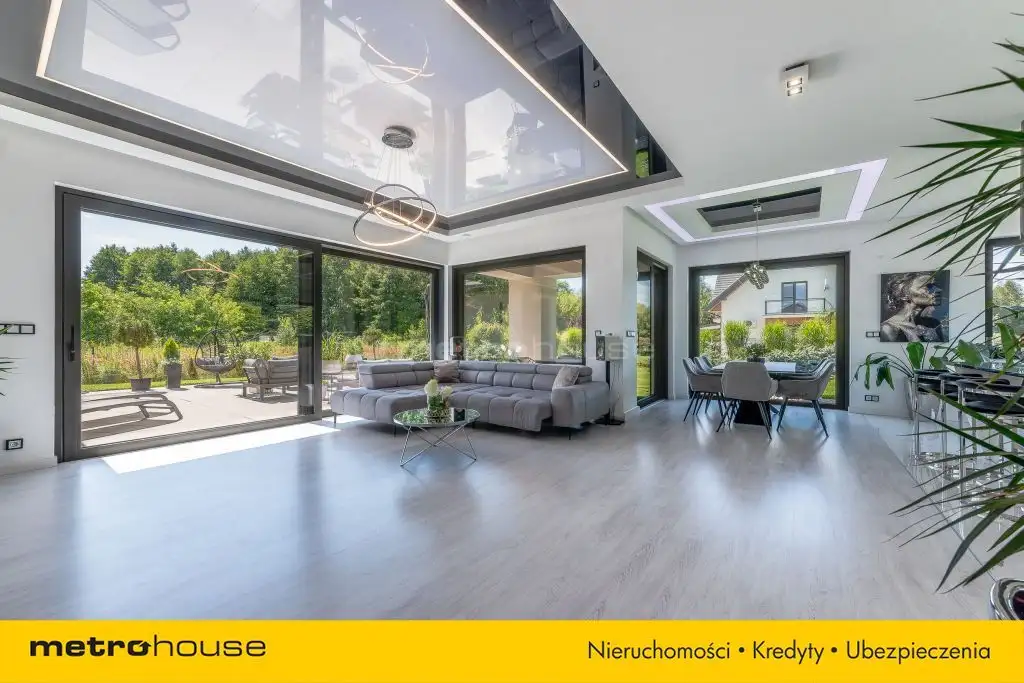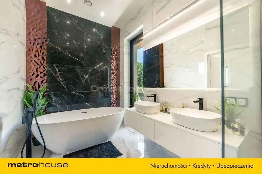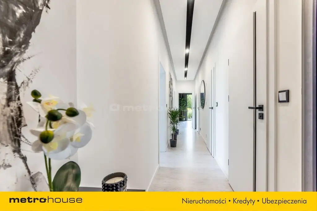 Dom został urządzony z dbałością o każdy detal **wysokiej klasy materiały**, nowoczesna kuchnia, klimatyczne oświetlenie, ogrzewanie podłogowe, rolety zewnętrzne. **Stan: do zamieszkania od zaraz bez żadnych nakładów finansowych.**