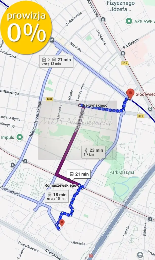 Nearby: kindergarten, clinic, numerous shops, very good bus and tram connections, the nearest metro station Słodowiec or Stare Bielany within a few bus stops or a 20-minute walk.