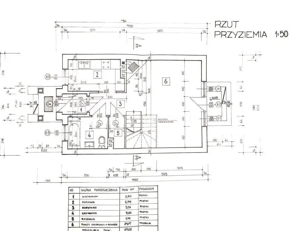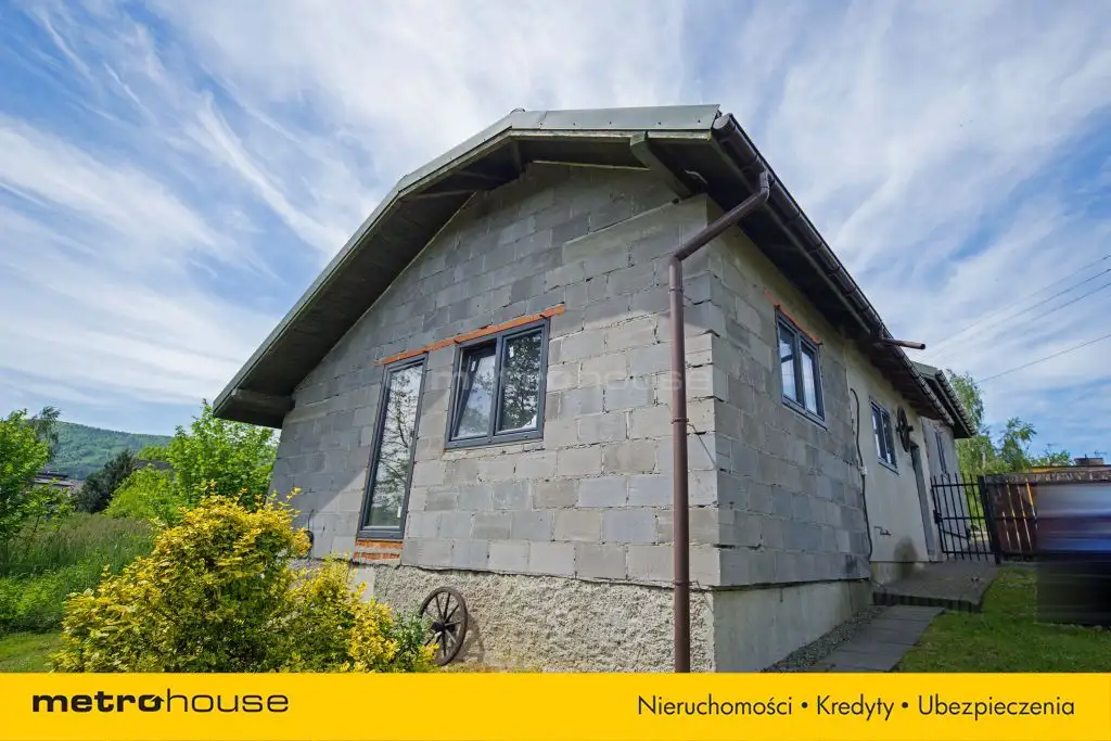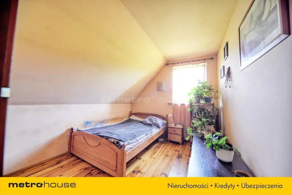 Na parterze budynku o całkowitej powierzchni 97,17m², znajduje się kuchnia, łazienka, spiżarnia oraz salon z pięknym widokiem na zielony ogród. W salonie kominek, który stanowi centralne źródło ogrzewania. Z salonu biegną otwarte schody wykonane w technologii konstrukcji stalowej prowadzące do pomieszczeń znajdujących się na poddaszu. Tam znajdują się 3 pokoje oraz pomieszczenie gotowe do zaadaptowania jako łazienka (możliwość usunięcia ścianek działowych i stworzenie przejrzystego poddasza). Wszystkie podłogi na poddaszu zostały wykonane z drewna, co dodaje uroku pomieszczeniom. Budynek gotowy do zamieszkania po niewielkim odświeżeniu ścian.