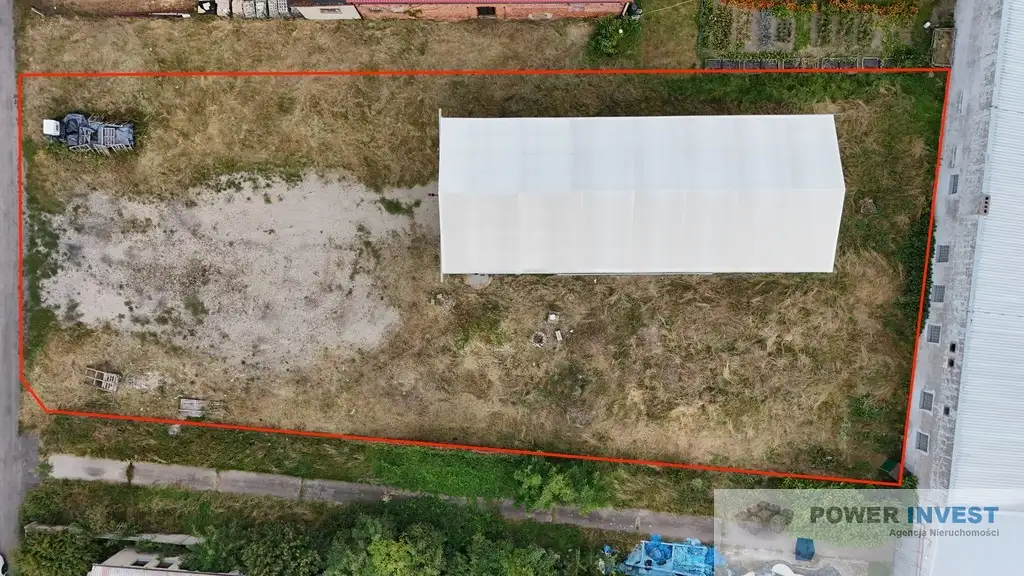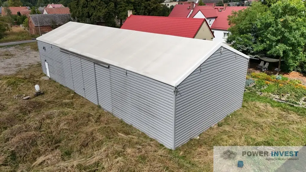 działka o wymiarach ok. 24 m x 60 m – kształtna, z wygodnym dojazdem,pełne media w drodze przy granicy działki: prąd, woda, kanalizacja,hala stalowa z:dużą bramą wjazdową od frontu,bocznymi drzwiami wejściowymi,dodatkową bramą rozsuwaną z boku,dach naciągany, materiałowy,wewnątrz wylana solidna posadzka, przystosowana do obsługi wózka widłowego, paleciaka i wysokiego składowania.Posadzka na hali B35, zacierana, szlifowana. Solidnie wykonana bardzo twarda. Podatek nieruchomości rocznie 9451 zł Możliwości wykorzystania: