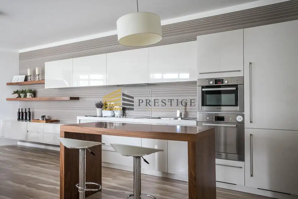The apartment has been finished with attention to every detail, using the highest quality materials. The well-thought-out layout of the rooms and large glazing provide exceptional living comfort and natural lighting of the interiors.