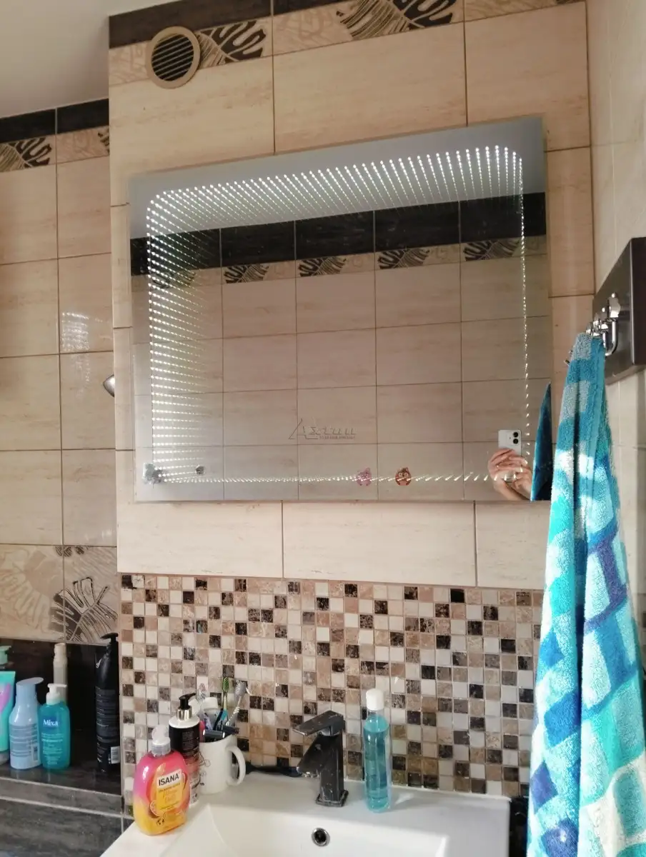 - w łazience podwieszany sufit z oświetleniem LED, okno,
