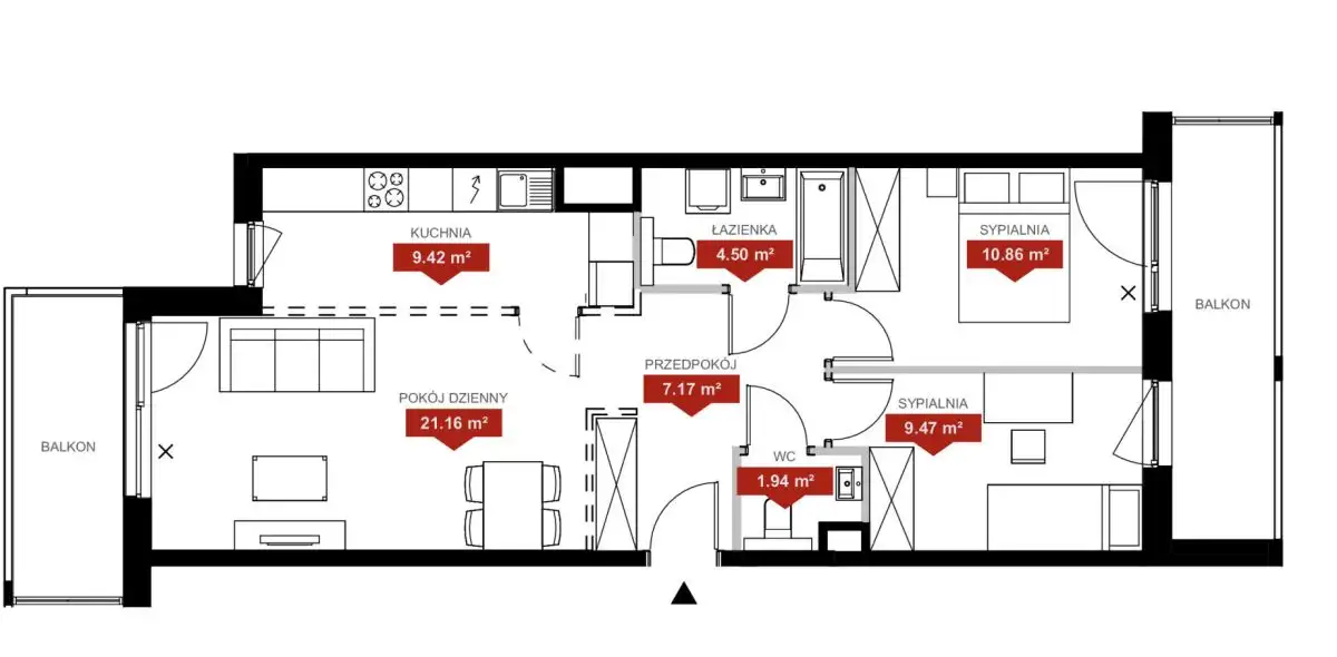3 - pokojowego mieszkania z 2 balkonami w stanie deweloperskim w Poznaniu