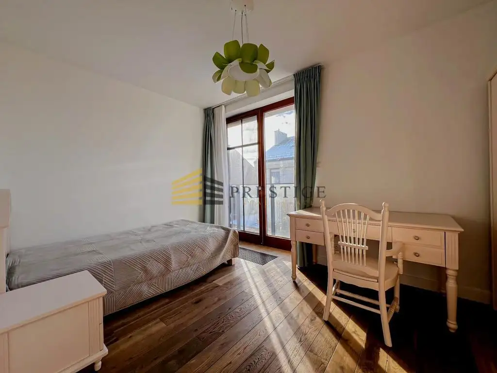 Situated in the exclusive Harmonium Compound, this home is in close proximity to the American School of Warsaw in Bielawa. The compound offers round-the-clock security and monitoring, providing a sense of security and privacy. The proximity to the Kabacki Forest and the Botanical Garden in Powsin adds to the appeal of this location. Residents have access to ample walking space and a playground for children. Numerous shops and bus stops are conveniently located nearby.