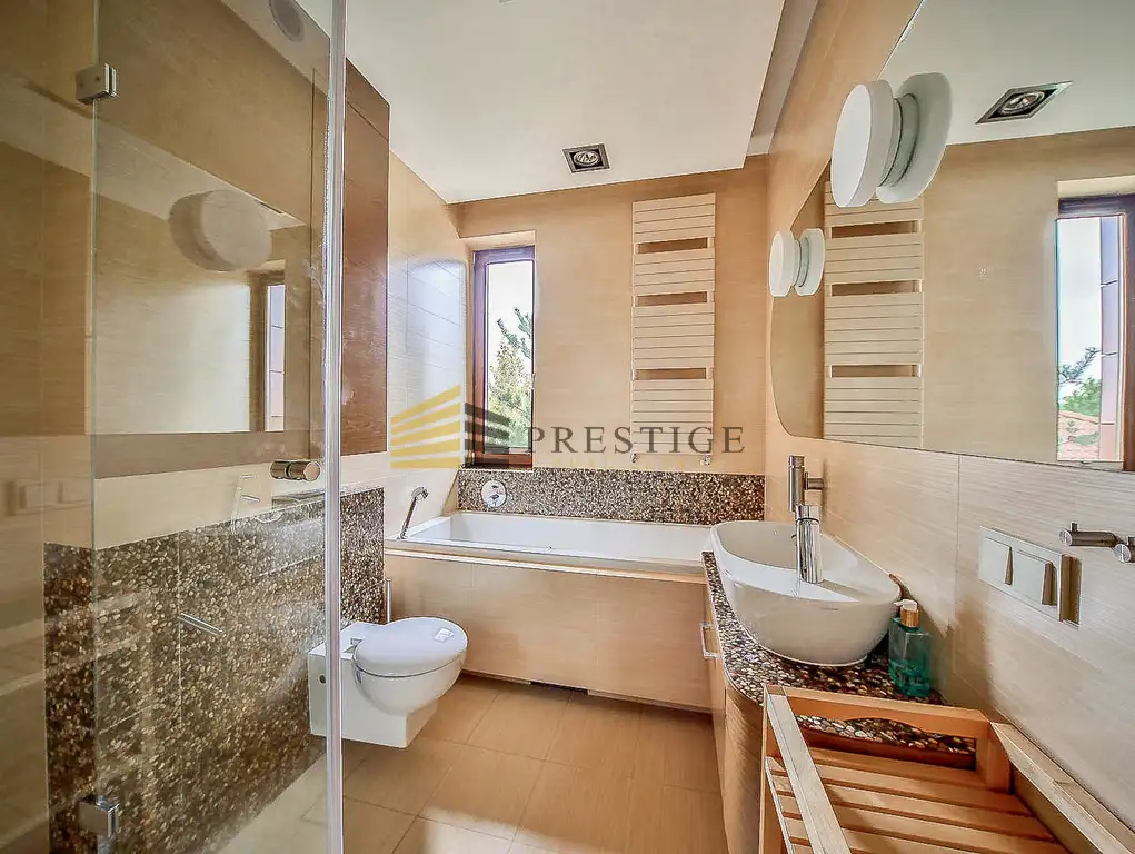- Modern bathroom with a bathtub and shower, providing comfort for all household members.