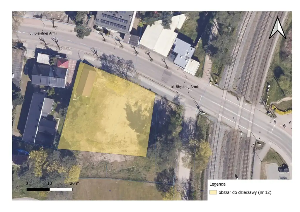 Mapa z zaznaczoną lokalizacją obszaru do dzierżawy
