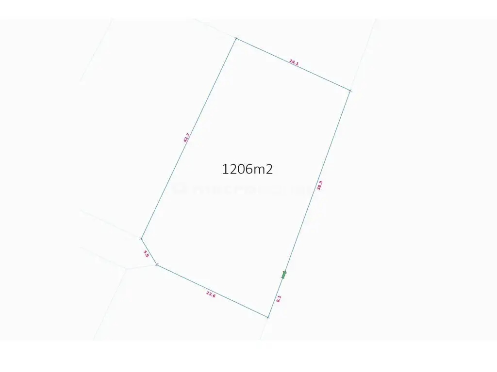 Powierzchnia 1206 m² o regularnym kształcie prostokąta, wymiary ok.25m X 45m, nieogrodzona, płaska, lekko pochylona, dobrze nasłoneczniona.