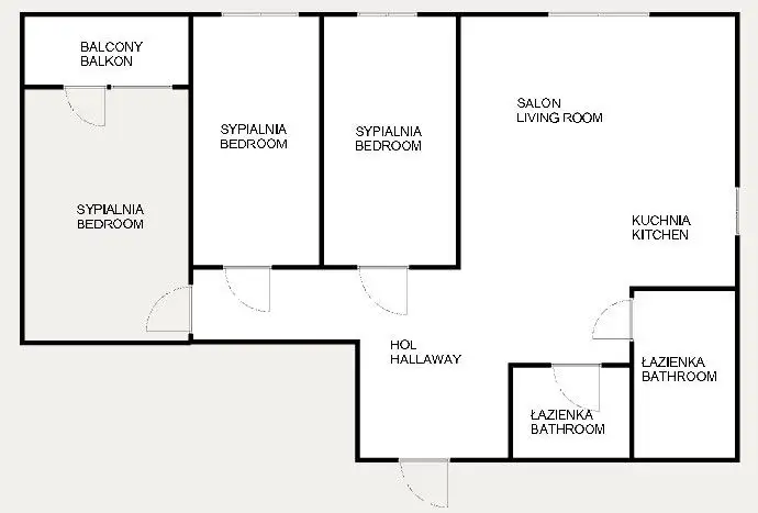 Pokoje: 3x sypialnia, przestronny salon, hol, 2x łazienka, kuchnia;