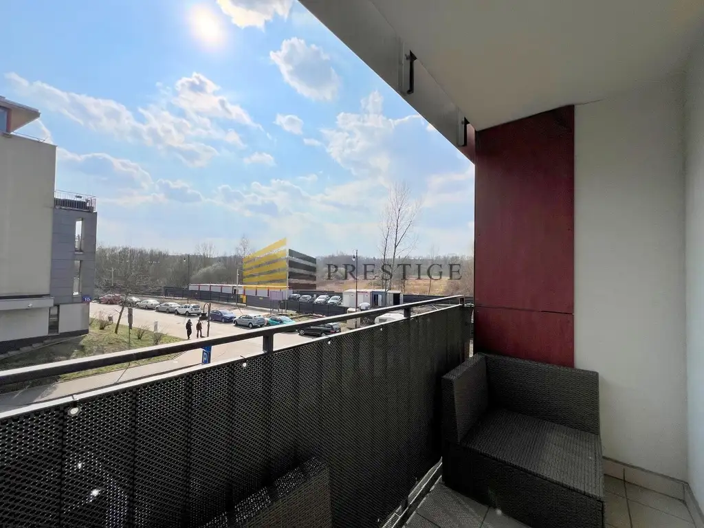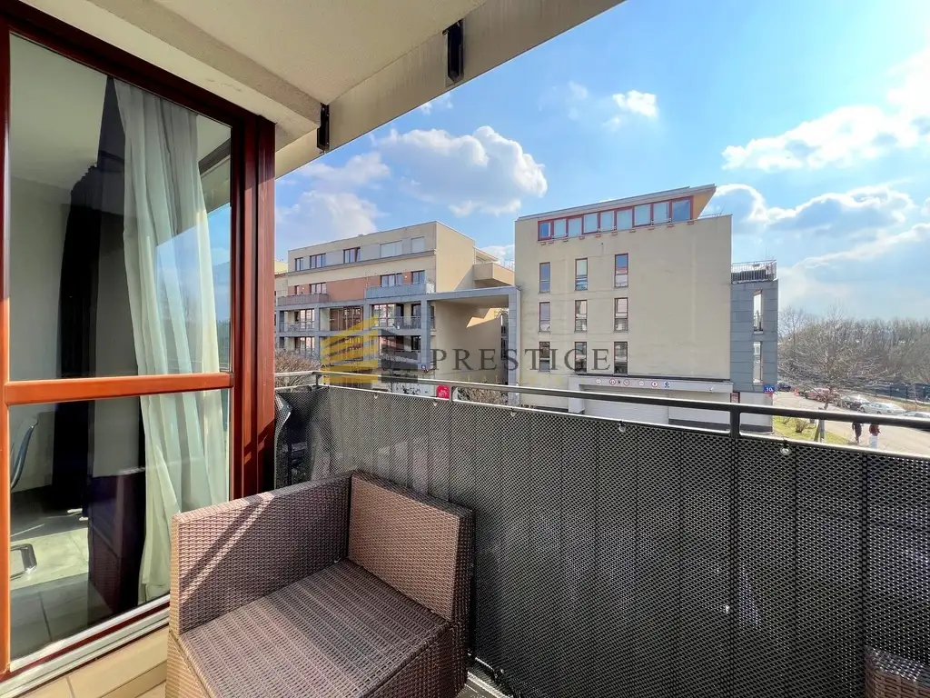 From the balcony there is a view of the green Ursynów escarpment.