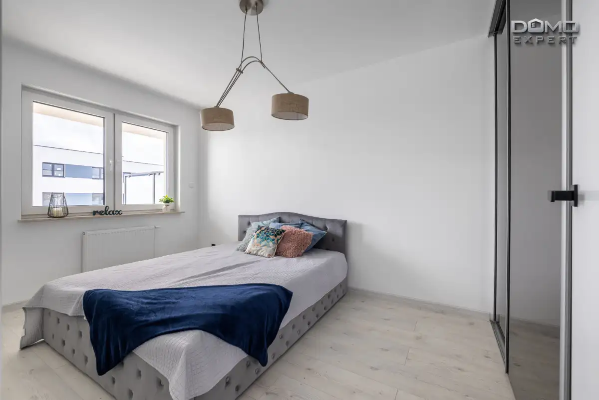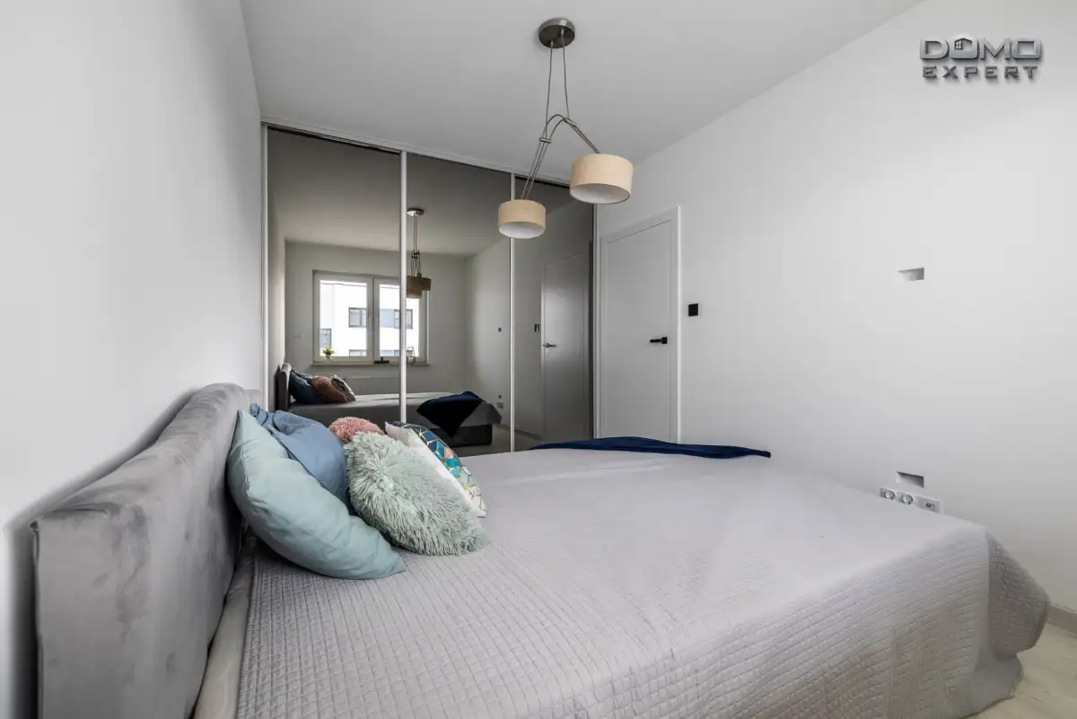 - w sypialnie nowe łóżko z materacem i dużą szafą wnękową wykonaną pod wymiar