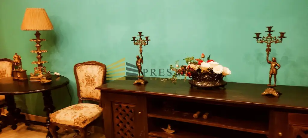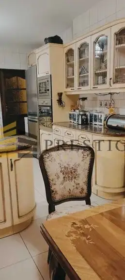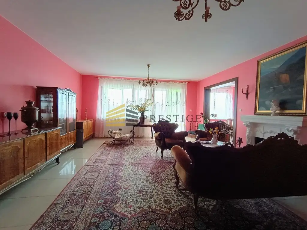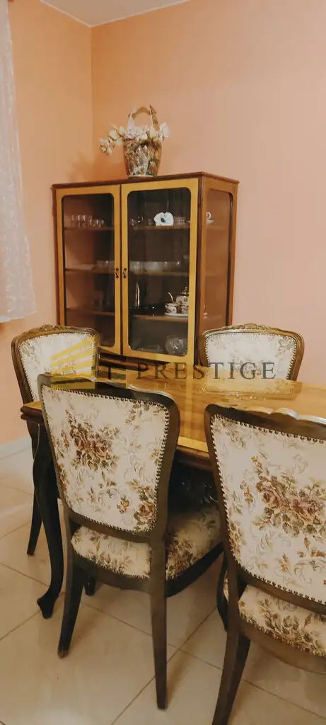 From the living room there is a passage to a large dining room also with furniture in the same style, connected to the kitchen.