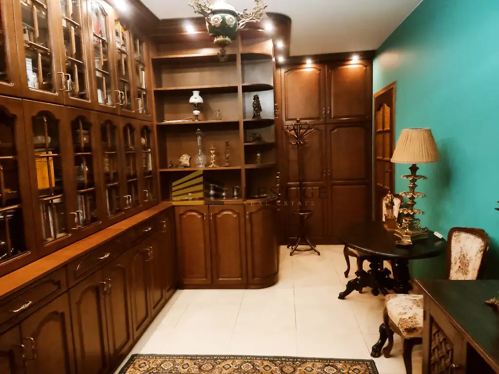 Chest of drawers and table made of exotic wood. The study has its own exit to the second glazed balcony.