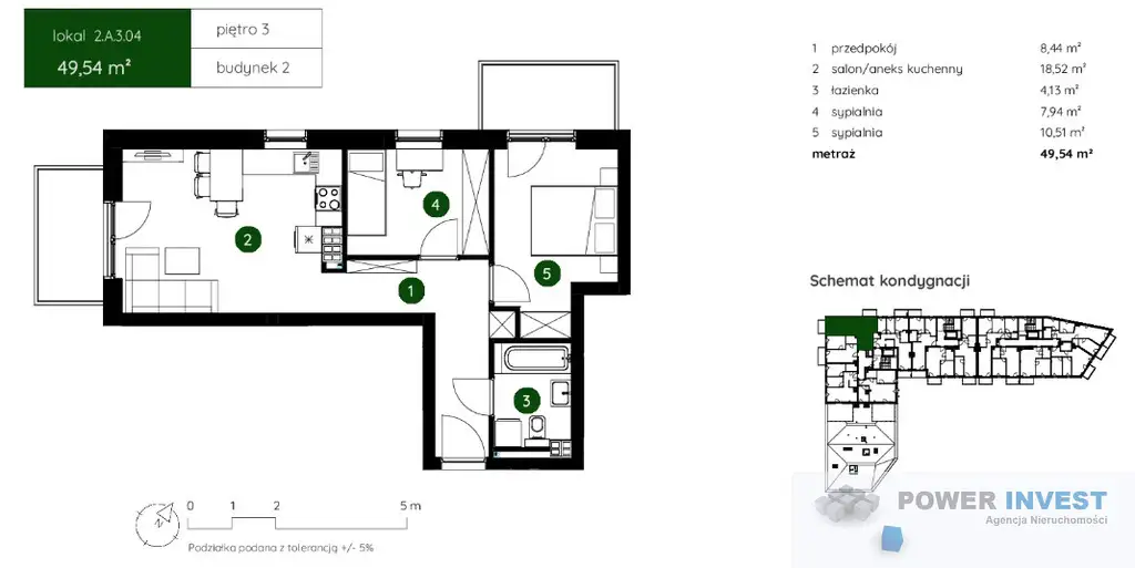 Powierzchnia całkowita: 49,54 m²