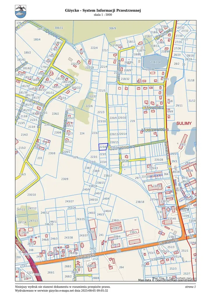 1) 223/6 o powierzchni 0,1279 ha, położona w miejscowości Gajewo, obręb geodezyjny Gajewo, gmina Giżycko dla której Sąd Rejonowy w Giżycku prowadzi księgę wieczystą OL1G/00016906/1. Wg ewidencji Gruntów i Budynków Starostwa Powiatowego w Giżycku działka oznaczona jest symbolem: RIVa – grunty orne, N - nieużytek.