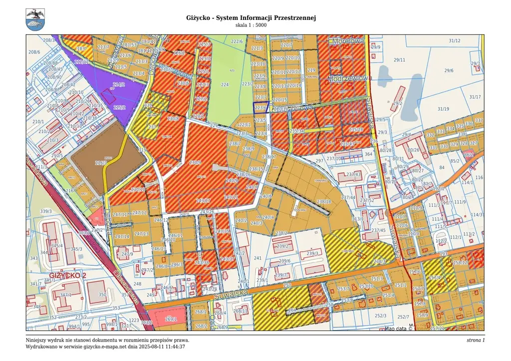 Nieruchomość jest objęta planem zagospodarowania przestrzennego dla części wsi obrębu geodezyjnego Gajewo po wschodniej stronie ul. Węgorzewskiej, gmina Giżycko zatwierdzonym Uchwałą Nr XLII/445/2021 z dnia 30 grudnia 2021 roku, ogłoszoną w Dzienniku Urzędowym Województwa Warmińsko – Mazurskiego, poz. 962 z dnia 01 marca 2022 roku. Zgodnie z powyższym planem przeznaczona jest pod teren zabudowy mieszkalnej jednorodzinnej, oznaczony symbolem MN4.