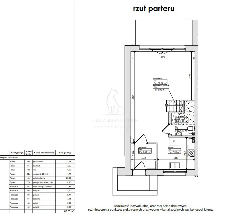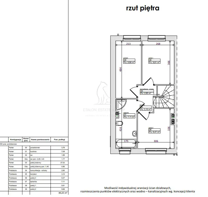 Domy cztero- i pięciopokojowe, o powierzchni od 85,23 m² do 104,86 m², zaprojektowane z myślą o maksymalnym wykorzystaniu przestrzeni. Układ pomieszczeń uwzględnia otwartą przestrzeń dzienną, jasne sypialnie oraz praktyczne rozwiązania architektoniczne.