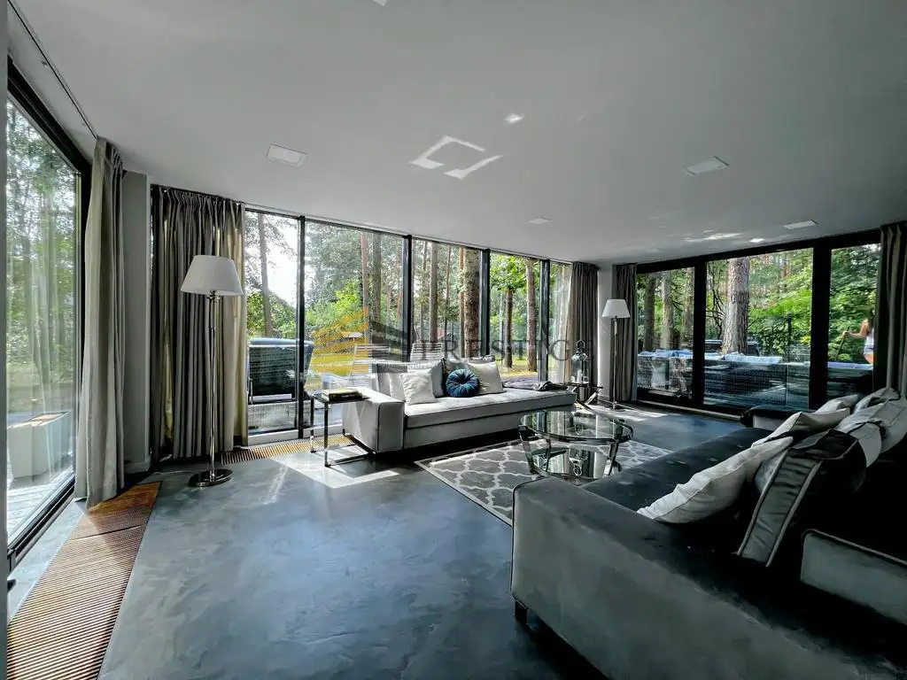 - salon z ogromnymi przeszkleniami, ogrodem zimowym oraz wyjściem na taras i ogród,